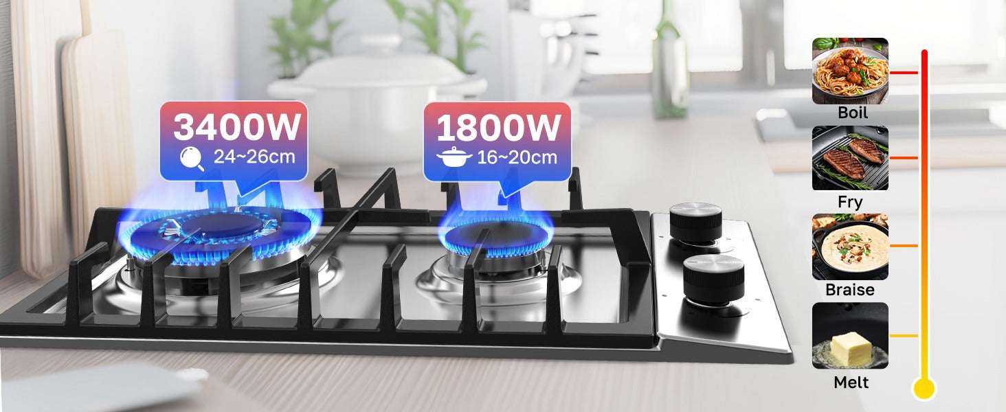 【NG/LPG CONVERTIBLE】The gas cooktop delivers the maximum 5.2KW power to propane and natural gas (Default Natural gas). Capable for multi-purpose such as light cooking family, small kitchen, etc. (Both LPG/NG Nozzles Included).